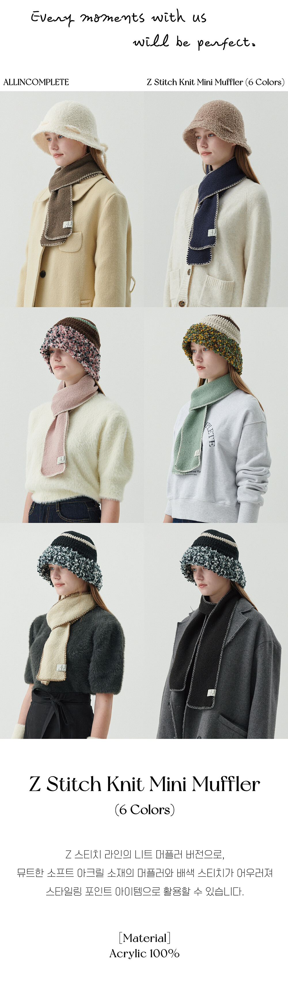 Z Stitch Knit Mini Muffler (6 Colors)