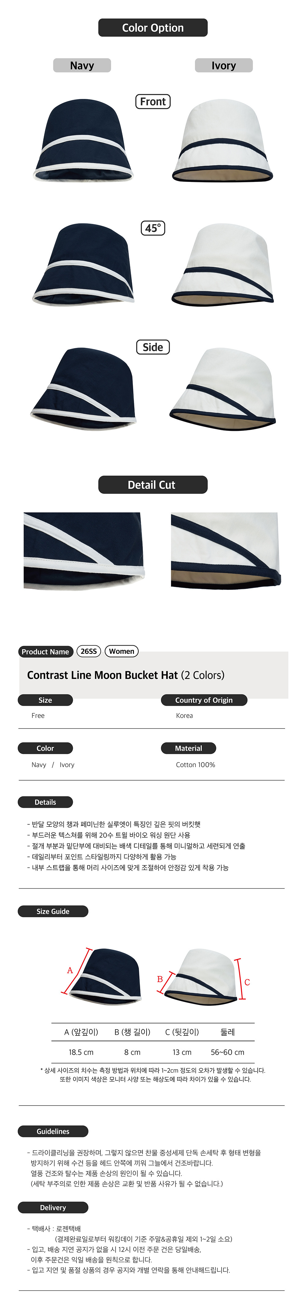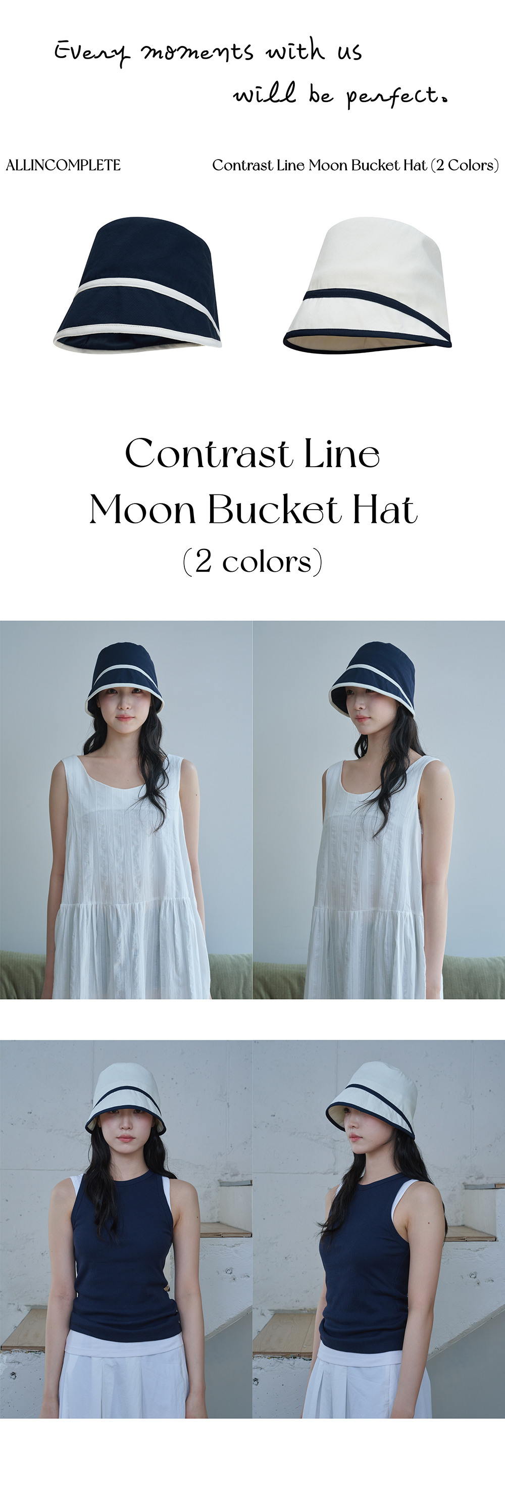 Contrast Line Moon Bucket Hat (2 Colors)